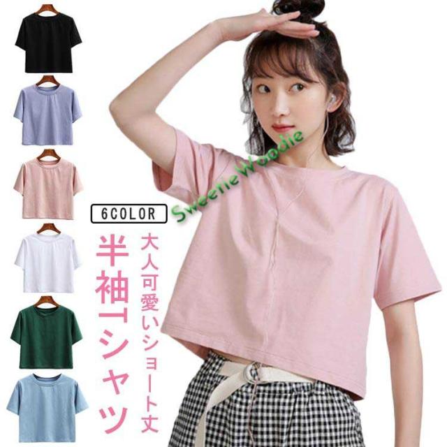 ショートTシャツ レディース カットソー トップス 半袖tシャツ ショート丈 おしゃれ ゆったり 体型カバー 短め 無地 大人可愛い 綿 コットン シ