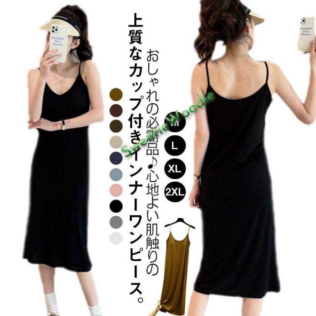 インナードレス ブラカップ付き ペチコート キャミソール ワンピース キャミワンピ ロング スリップ 透け防止 ペチコートワンピース チュニック ミニ