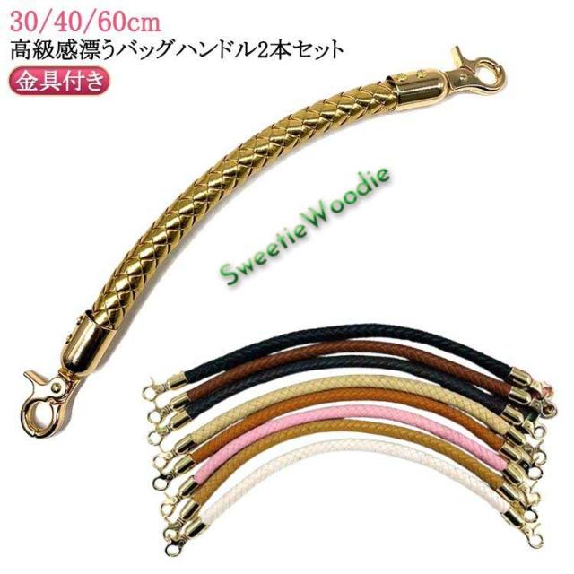 | 30/40/60cm 高級感漂うバッグハンドル2本セット 編み込みのあるシンプルなデザインがどんなかばんにも合わせやすく高級感を演出 | |