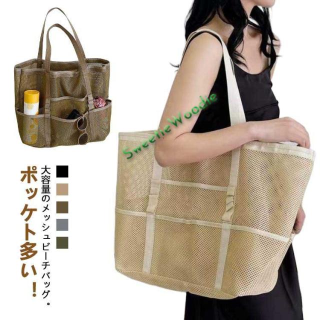 プールバッグ ビーチバッグ トートバッグ プールバッグ 大容量 ビーチ コンパクト トート メッシュ かごバッグ 軽量 ショルダーバッグ レジャーバッ