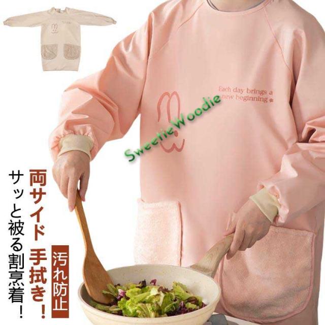レディース 長袖 前掛け 送料無料 かっぽうぎ エプロン 割烹着 汚れ防止 ポケット付き 撥水 かっぽう着 スモック 防水 かっぽうぎ キッチン 手拭