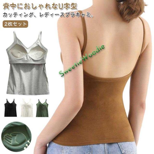 2枚セット ブラトップ 美胸 カップ付きキャミソール 補正 インナー カップ付き ブラキャミ 背中あき 下着 ブラジャー キャミソール 2枚セット レ