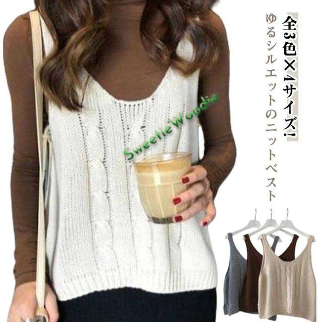 フレンチスリーブ ルーズ カーディンガン クールネック レディース ニットベスト レイヤード ゆったり ノースリーブ 重ね着 トップス ニット フレア