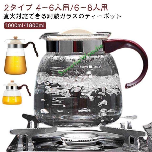 ガラスケトル 耐熱ガラス 茶こし一体型蓋 透明 ティーポット ガラスピッチャー 麦茶ポット ガラス製 ギフト 耐熱ガラスポット ガラス 1000ml