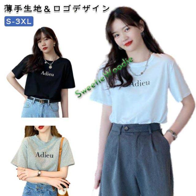 ロゴ インナー 半袖 薄手 トップス Tシャツ 半袖tシャツ レディース カットソー ロゴtシャツ オーバーサイズ 体型カバー ゆったり ロゴ プリン