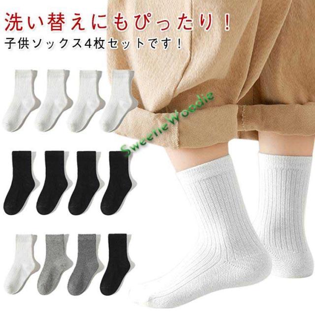 グレー ソックス 4足セット 4足セット スクールソックス 無地 スクール靴下 女 男 リブソックス キッズ 靴下 レディース 通園 通学 制服 メン