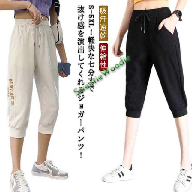 パンツ ポケット ジャージ 薄手 ジョガーパンツ ジョガーパンツ 無地 夏用 レディース 吸汗速乾 スポーツパンツ 七分丈パンツ カジュアルパンツ ハ