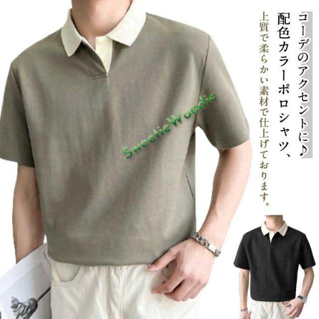 ポロシャツ ビジネス ポロシャツ ゴルフウェア ポロシャツ 襟 韓国ファッション 半袖 バイカラー 20代 ゴルフ 30代 ポロシャツ 夏 配色 Tシ