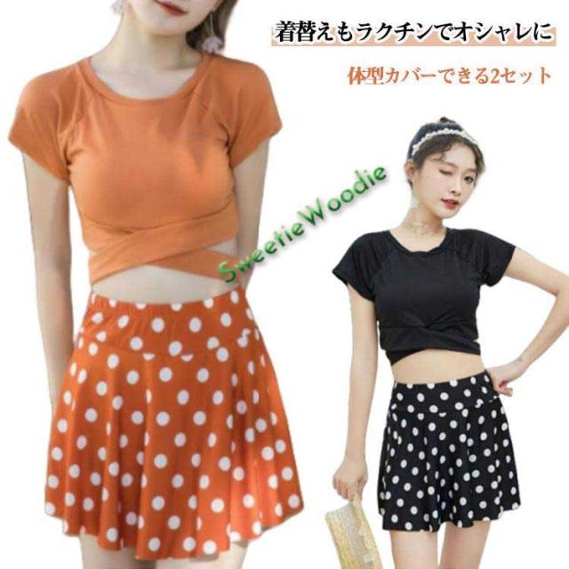 フレアスカート 水着 ビキニ レディース 半袖 2点セット スカート 20代 セパレート トップス 体型カバー 洋服みたい 水着 盛れる ウエスト お