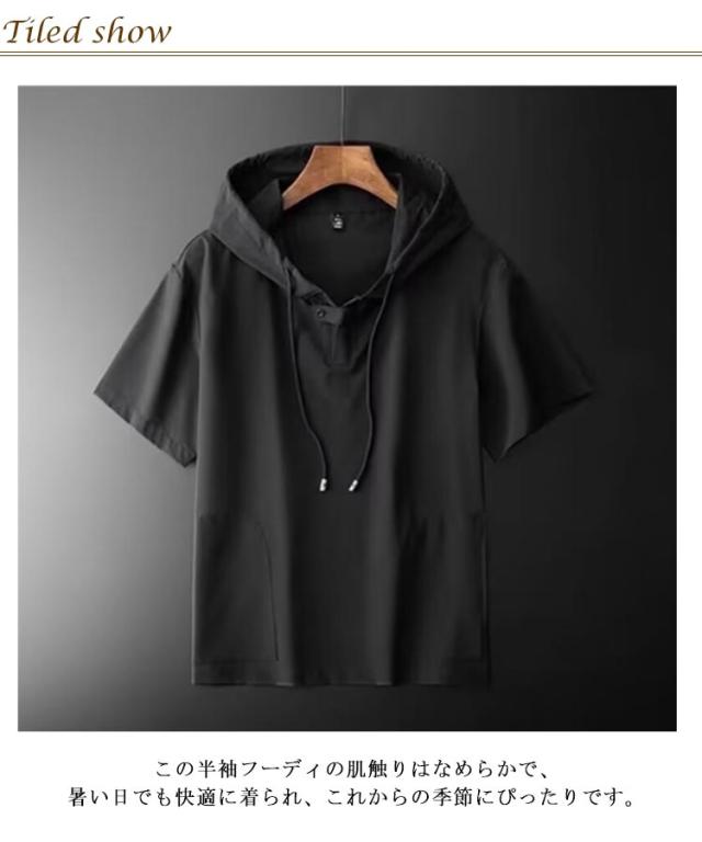 軽量 吸汗速乾 薄手 冷感 フード付き メンズ UV対策 半袖パーカー パーカー 通気性 半袖パーカー 無地 アイスシルク ゴルフウェア トレニンーグウェア 春夏 スポーツ ストレッチ おしゃれ メンズファッション 海水浴場 プール M-4XL