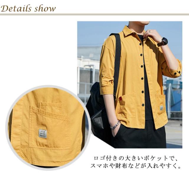 | M-3XL!/七分袖/カジュアルシャツ カラー:カーキ ブラック グレー グリーン イエロー 幅広いコーディネイトで使いやすい人気シャツです。 夏コーデのインナーとして重宝すること間違いなしの一着です。 ゆったりとしたデザインが着心地も良く、大人っぽい魅力あふれるファッションアイテムです。 スッキリとしたシルエットを形成し上品・スタイリッシュにキマります。 室内での冷房対策にもおすすめです。 ロゴ付きの大きいポケットで、スマホや財布などが入れやすく。 白Tなどのインナーにさらりと羽織ればライトアウター感覚で万能アイテムに。 | |