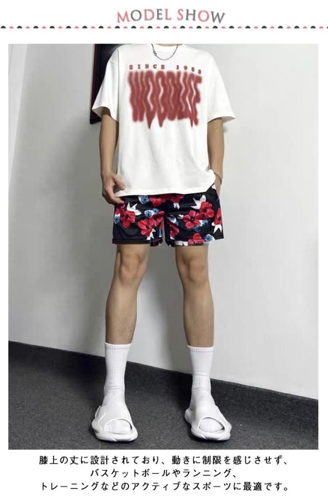 ズボン メンズ バスケ 半ズボン ショートパンツ おしゃれ 短パン バスケパンツ バスパン ジュニア 膝上 ハーフパンツ タイダイ風 スポーツ バスケットボールパンツ バスパン 花柄 運動会 体育祭 通気 部屋着 ウエストゴム