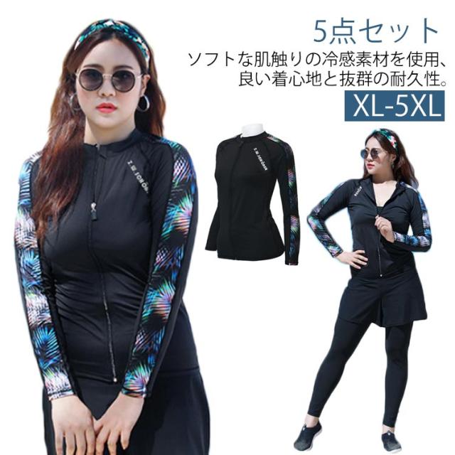| 5点セット XL-5XL ソフトな肌触りの冷感素材を使用、良い着心地と抜群の耐久性。 ラッシュガードはこだわりにこだわった無地と柄の切り替えラインで、着た瞬間魔法のように細く見えちゃう、着痩せ効果が期待できる。 | |