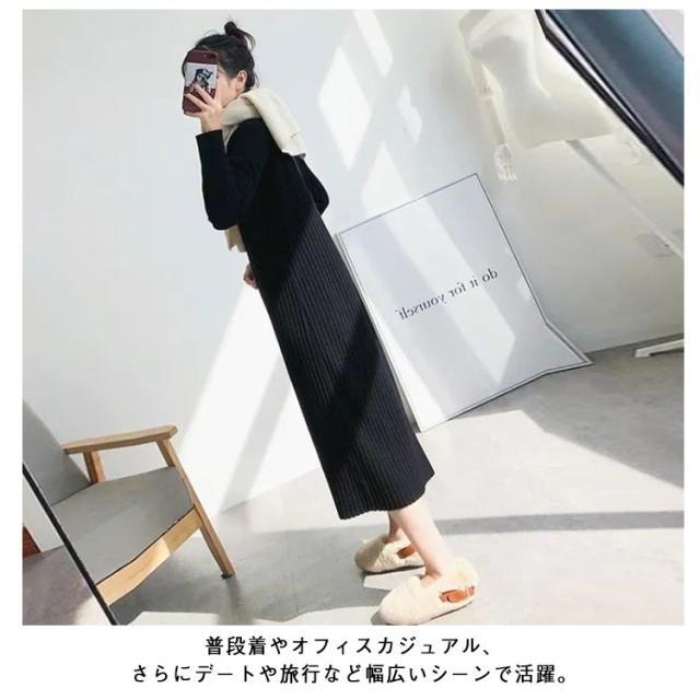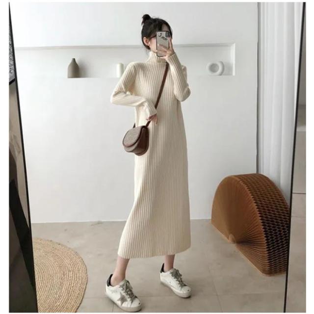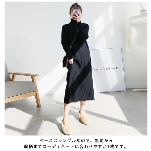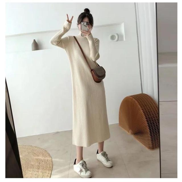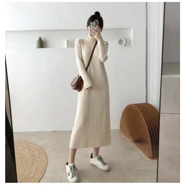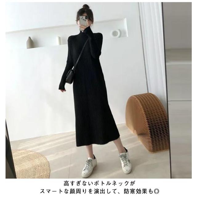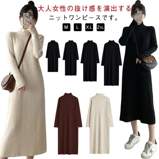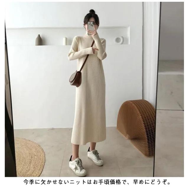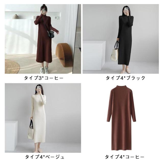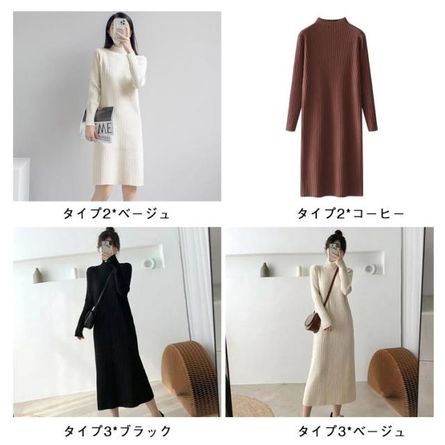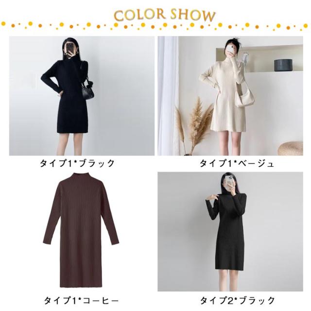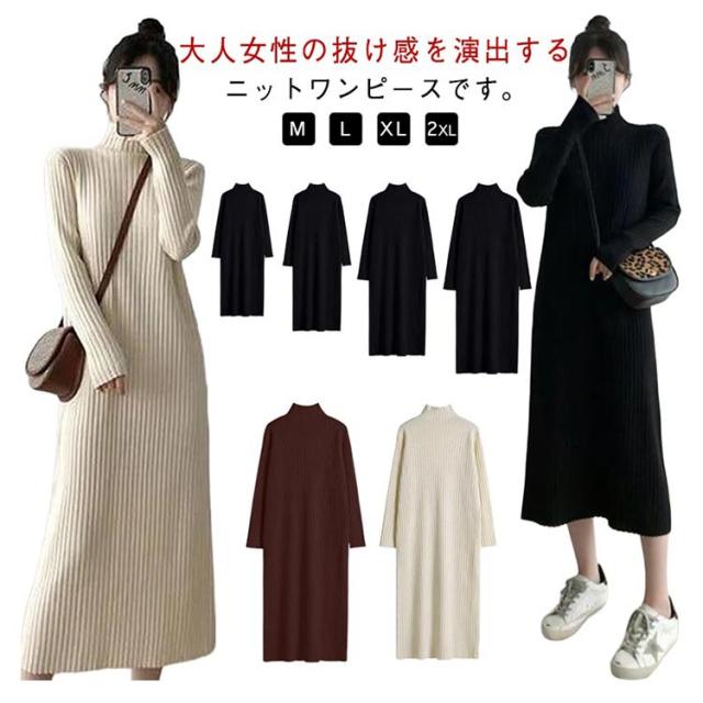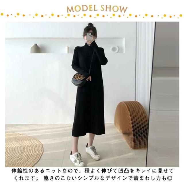 ニットセーター ニットドレス ニットワンピース ワンピース 春秋冬 ニットワンピース ニット レディース ハイネック ロング リブワンピース 暖かい 柔らかい ミディ丈 厚手 無地 セータースカート トップス インナー 長袖 カジュアル シンプル ストレッチ 着回し 春 秋 冬