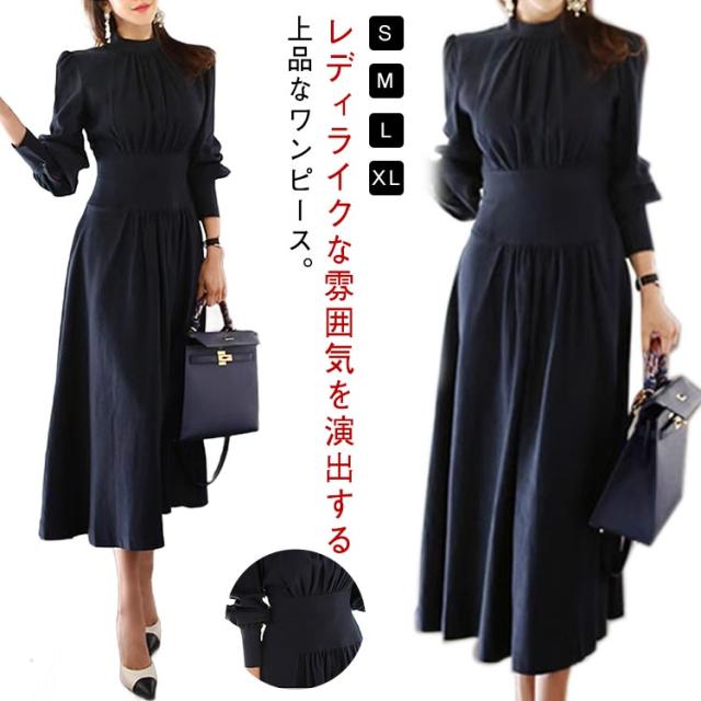 上品 Aライン 秋 秋服 ロング丈 オフィス 長袖 体型カバー ロングワンピース レディース 無地 ゆったり かわいい カジュアル シンプル キレイめ OL 冬 通勤 ワンピース 大人 可愛い ファション 着痩せ ワンピース 普段着 お出かけ 旅行 20代 30代 40代 ギフト
