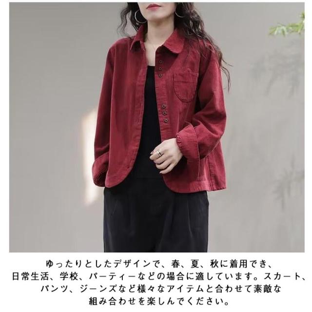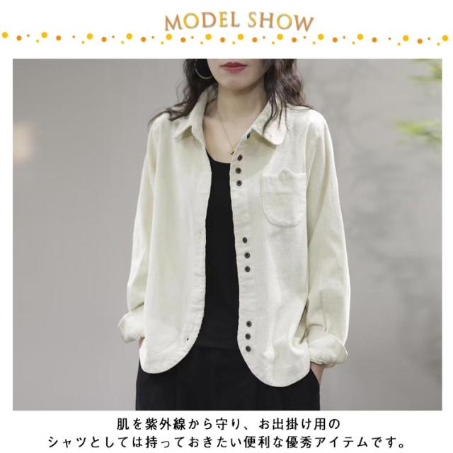 コーデュロイ おしゃれ 長袖 夏用 シャツ 夏 シャツ ブラウス カットソー 春 薄手 ゆったり 軽量 シンプル かわいい 無地 きれいめ トップス 春夏 レイヤード 体型カバー カジュアル 20代 30代 40代 50代 フォーマル