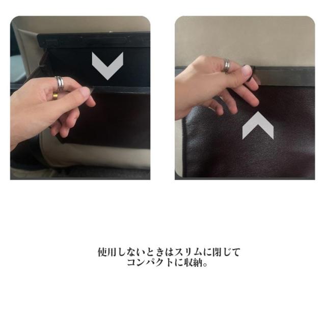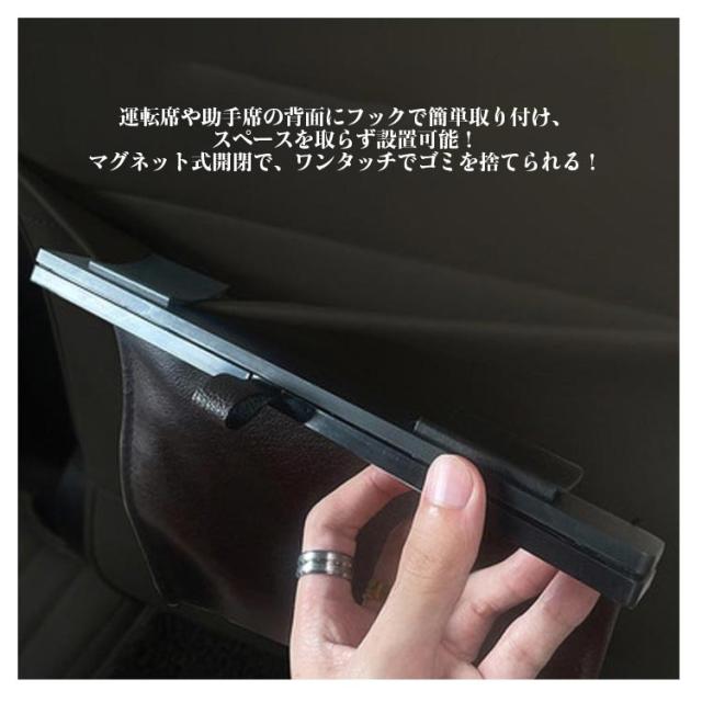 | 様々な車種に対応!マグネット式スマートゴミ箱です。 高品質な防水レザー素材を採用し、汚れてもサッと拭き取れる。 片手でパッと開けられ、戻すとピタッと閉じるので、簡単にゴミを捨てられます。 運転席や助手席の背面にフックで簡単取り付け、スペースを取らず設置可能! マグネット式開閉で、ワンタッチでゴミを捨てられる! 使用しないときはスリムに閉じてコンパクトに収納。 シンプルで高級感のあるデザインだから、車内のインテリアにも馴染む! | |