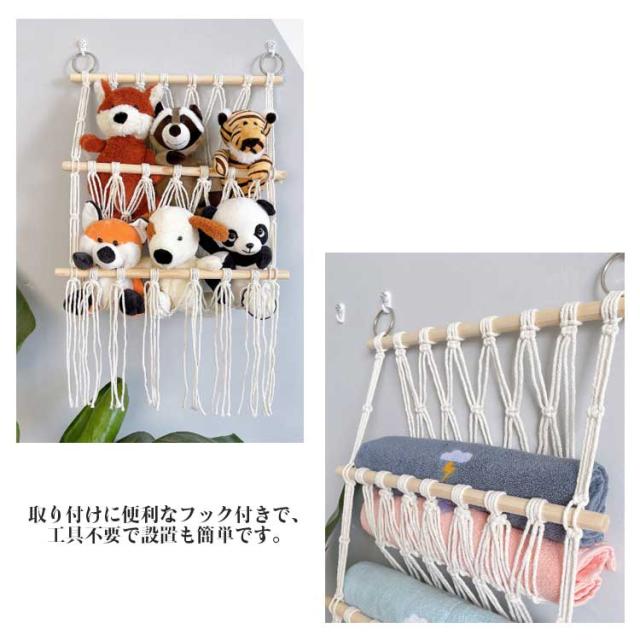 | ぬいぐるみや小物をすっきりおしゃれに収納できる、ハンモック式の収納アイテムです。 高品質の素材を使用し、小さなお子様がいるご家庭でも安心して使用できます。 1〜4段まで選べるので、収納量やお部屋の雰囲気に合わせてカスタマイズ可能。 取り付けに便利なフック付きで、工具不要で設置も簡単です。 お子様のお部屋はもちろん、インテリアとしてリビングにもおすすめ。 限られたスペースを有効に使い、床に散らばるぬいぐるみをスマートに収納。 | |
