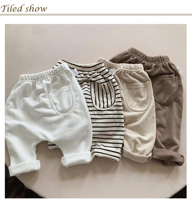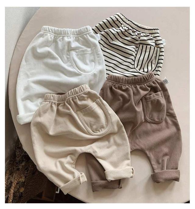 | ロングパンツ ベビー 韓国風デザインのゆったりシルエット おしり部分にゆとりを持たせた“ビッグヒップ”デザインで、オムツの上からでも楽々。 通気性抜群の薄手コットン素材 柔らかく肌に優しい綿素材を使用。 軽量×動きやすい ナチュラルで合わせやすい無地とストライプ柄をご用意。 | |