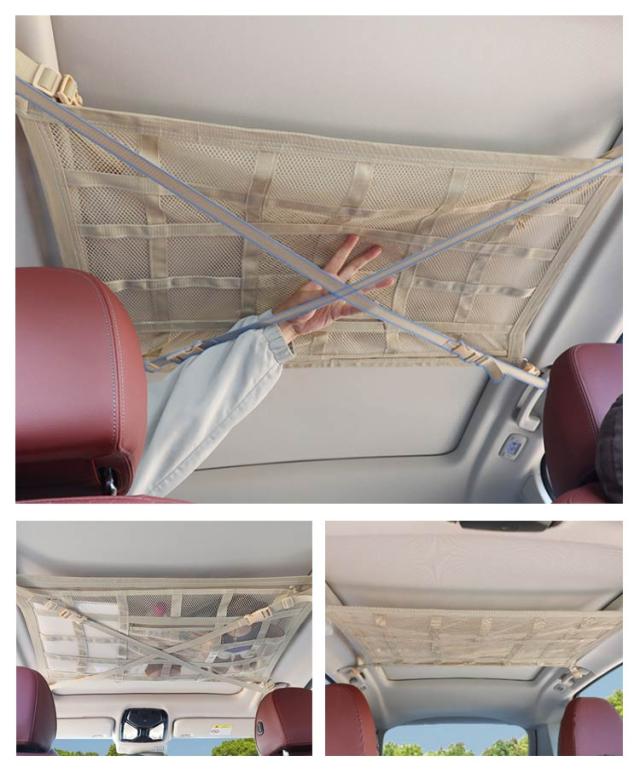 | 車用天井収納ネット。 車のデッドスペースを活用した圧倒的な収納力!天井のデッドスペースを有効活用!子供の荷物やキャンプ用品等、お出かけの際の荷物を簡単に収納することができます。 便利なダブルジッパーを採用!荷物を簡単に取り出せるよう、 ダブルジッパー仕様としました。荷物をネット内に収納でき、運転中に落ちてくる心配もありませ 立体二里構造による独度UP!荷物を載せるメッシュ部分を強化 するため、メッシュが重ならない 二重構造に設計しました。 使用方法:1.装着のための準備をします。 2.ベルトをグリップに通します。 3.バックルをクロスになるように 4.ネットが張るように長さを調整! | |