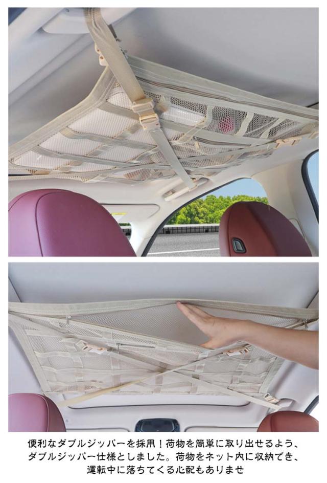 車用天井収納ネット 収納ネット ルーフネット 荷物 車用天井収納ネット 車 便利グッズ カーゴネット ファスナー付き 車 天井ネット ラゲッジネット 収納ネット 収納 マルチネット 天井 ネット 車中泊 カー用品 車載