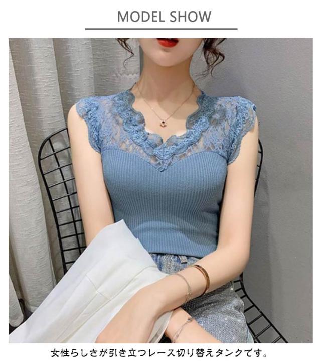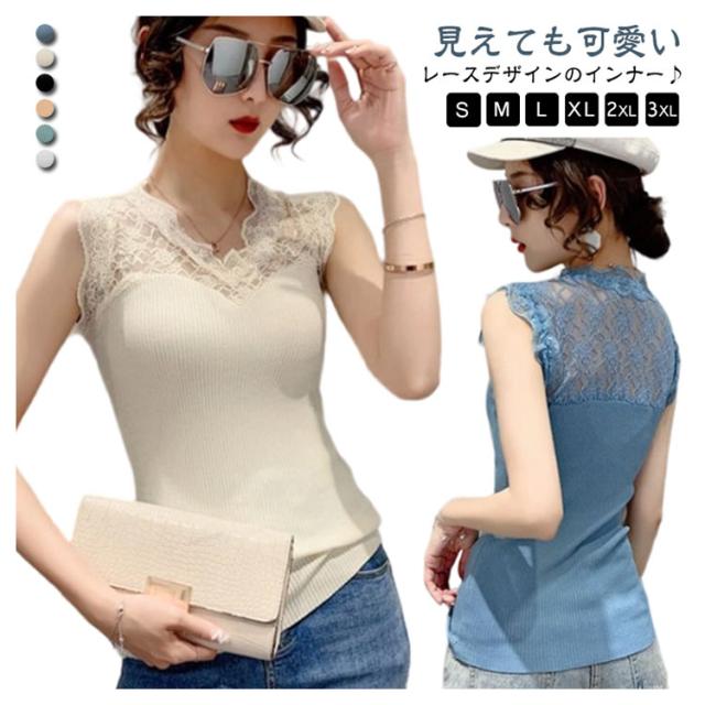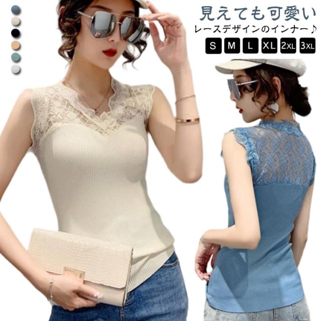 Vネック 見せるタンクトップ 接触冷感 レース切り替え インナー タンクトップ レイヤード レディース タンク 接触冷感 春 夏 ブラ紐隠し 薄手 シンプル レースタンクトップ 秋 重ね着 レイヤード tシャツ レース トップス 袖なし 黒 白 涼しい