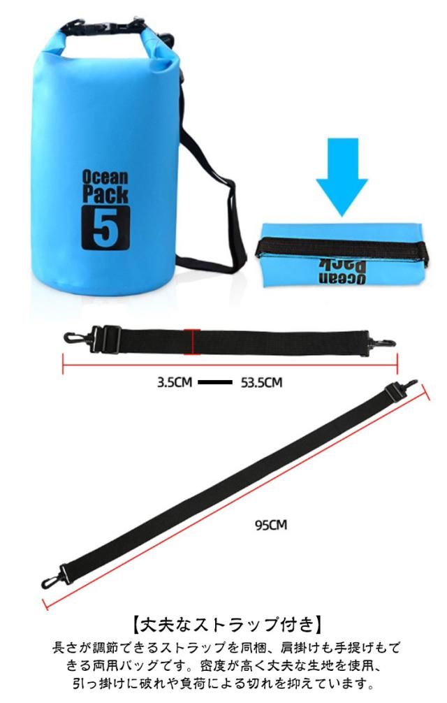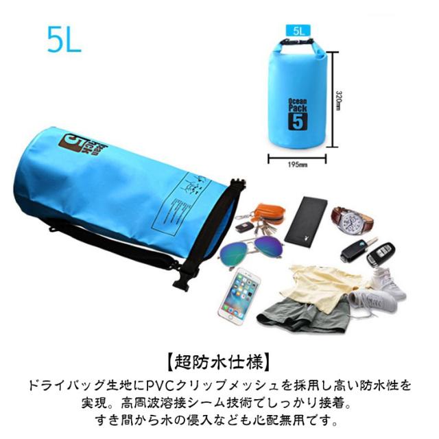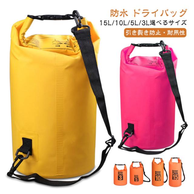 | 防水 ドライバッグ15L/10L/5L/3L選べるサイズ 【超防水仕様】ドライバッグ生地にPVCクリップメッシュを採用し高い防水性を実現。高周波溶接シーム技術でしっかり接着。すき間から水の侵入なども心配無用です。 簡単操作で汚れ、ホコリ、砂や水などからしっかりと守ります。スイミングやバイクツーリングなど多用途にご利用いただける防水ドライバッグです。登山、キャンプ、海水浴、海遊び、サーフィン、カヤック、ボート、温泉、ラフティング、釣り、水泳、スノーボードなどにも大活躍します。 【引き裂き防止・耐用性】補強加工によりショルダーベルト付け根をしっかりと固定。長期使用による引き裂けを抑え、長くご利用いただけます。 【丈夫なストラップ付き】長さが調節できるストラップを同梱、肩掛けも手提げもできる両用バッグです。密度が高く丈夫な生地を使用、引っ掛けに破れや負荷による切れを抑えています。 | |