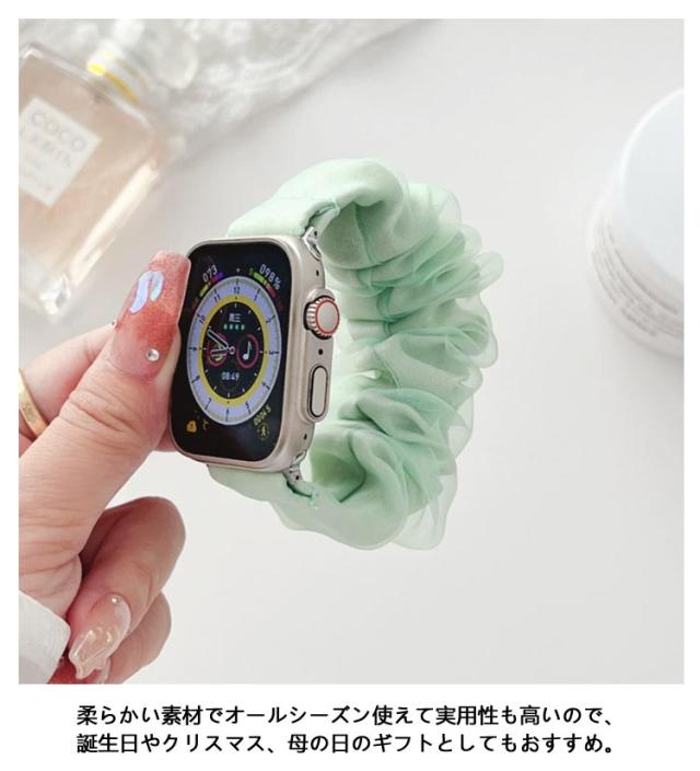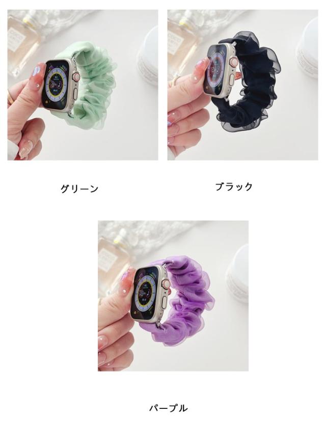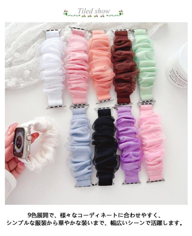 Android かわいい フリル シルク シュシュ Watch Apple アップルウォッチ スマートウォッチ 韓国 シアー 睡眠 レディース 用 iPhone ベルト Apple 時計 二重 防水 SE ultra 第2世代 腕時計 おしゃれ キラキラ 大人可愛い 38mm 40mm 41mm 42mm 44mm 45mm 46mm