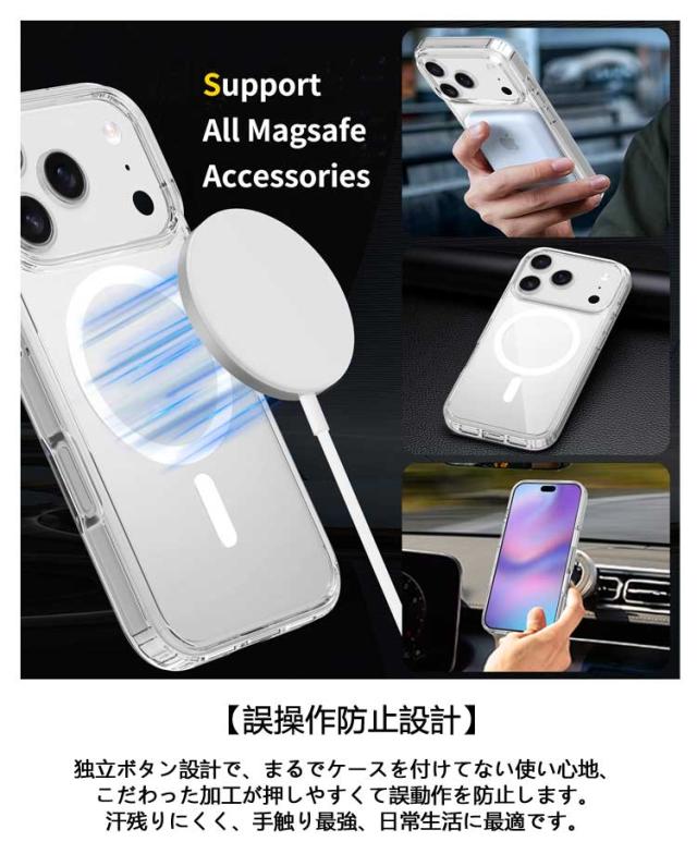 MagSafe対応 iphone15 iphone17pro iphone17ケース ケース クリアケース 黄変防止 TPU iphone17promax iPhone16 カバー 透明 耐衝撃 おしゃれ マグネット phone16e スマホケース iphoneケース iphone16pro iphone17Air ワイヤレス充電対応 iphone14 plus iphone13