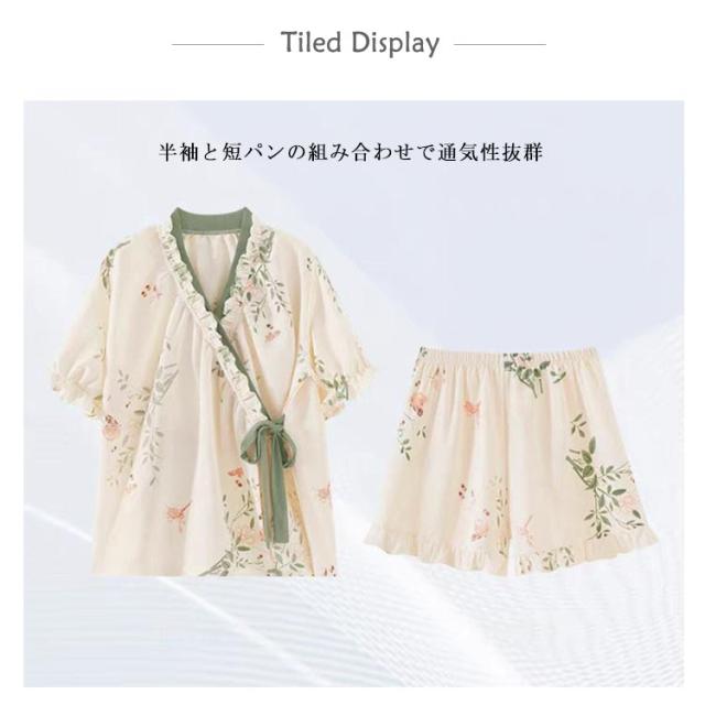 甚平 かわいい 春 秋 ルームウェア レディース 夏 半袖 Vネック 短パン ウエストゴム 薄手 上下セット 和風 寝室用 ゆったり 快適 ナイトウェア 敏感肌向け 柔らかい 旅行 おしゃれ 部屋着 軽量 リラックス 半袖 シンプル
