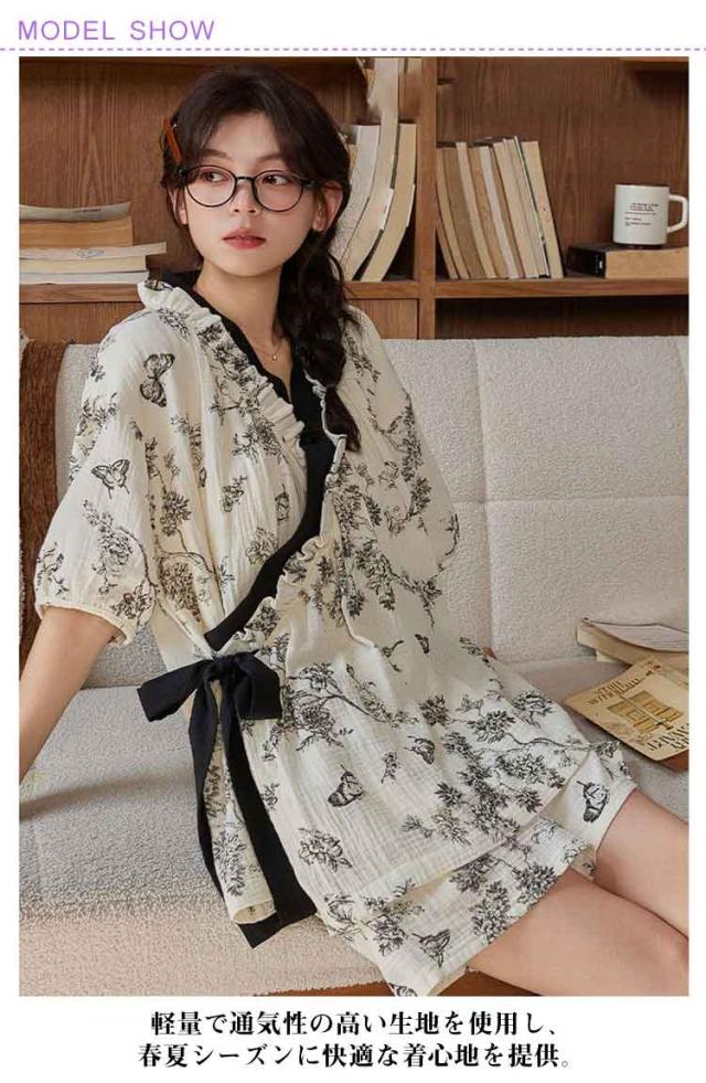 上下セット 可愛い 甚平 通気性 ナイトウェア 半袖 薄手 夏 短パン和風パジャマ レディース カップ付き ルームウェア Vネック 上下セット ゆったり 涼しい 部屋着 軽量 寝間着 おしゃれ ルームウェア 敏感肌に優しい 快適 旅行