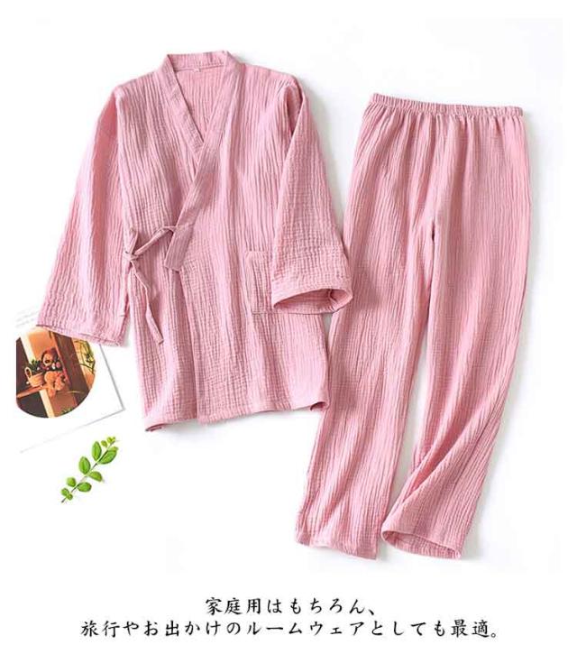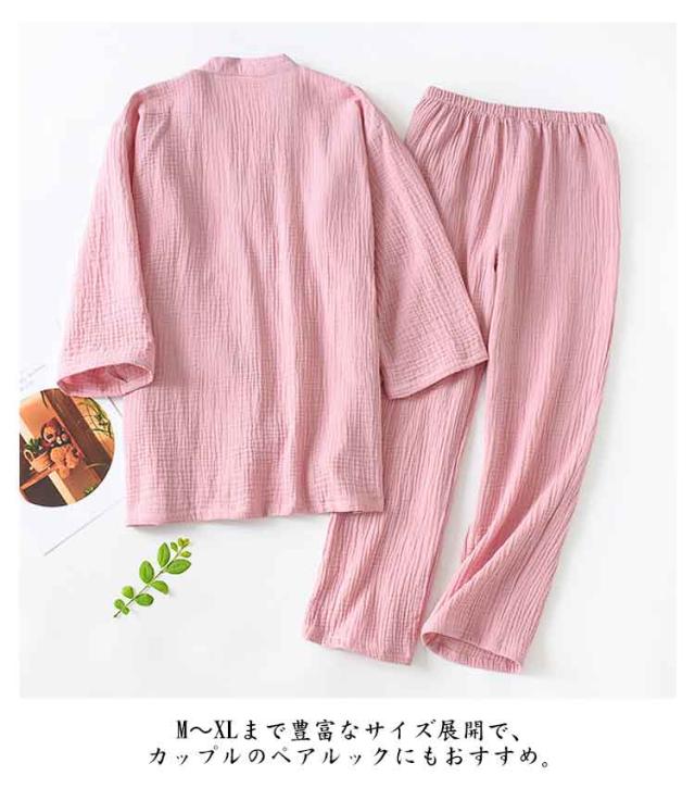 甚平 くしゅくしゅ生地 レディース 寝間着 秋 上下セット メンズ Vネック 五分袖 夏 綿 ナイトウェア 薄手 吸汗 甚平 長ズボン カップル 通気性 ペアルック 軽量 ゆったり ルームウェア 春 シンプル リラックスウェア M L XL