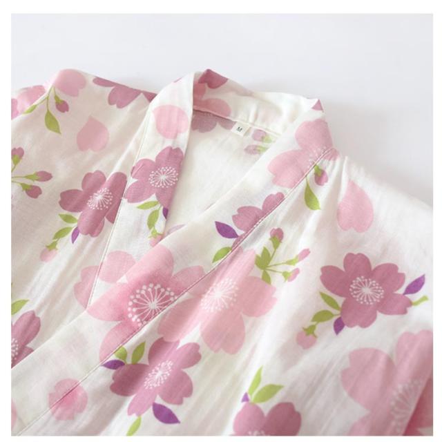 | 桜柄の可愛い和甚平パジャマ上下セット 軽くて着心地抜群、春秋に最適 綿のダブルガーゼ素材で作られた、肌に優しく通気性抜群の和風甚平上下セット。 春秋シーズンにぴったりな軽くて薄手の五分袖トップスと長ズボンのセット。 桜の美しい柄と甘さを感じるピンクカラーで女性らしいデザイン。 Vネックのリボン付きで着脱が簡単、ゆったりしたシルエットで快適な着心地。 実用的なポケット付きで、部屋着としても便利。 | |