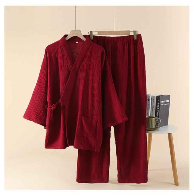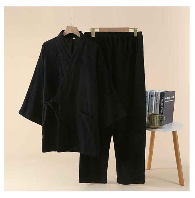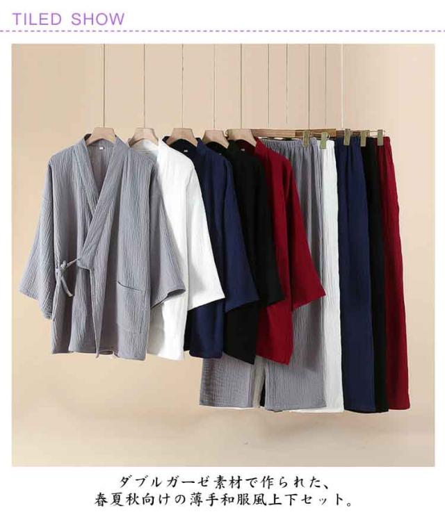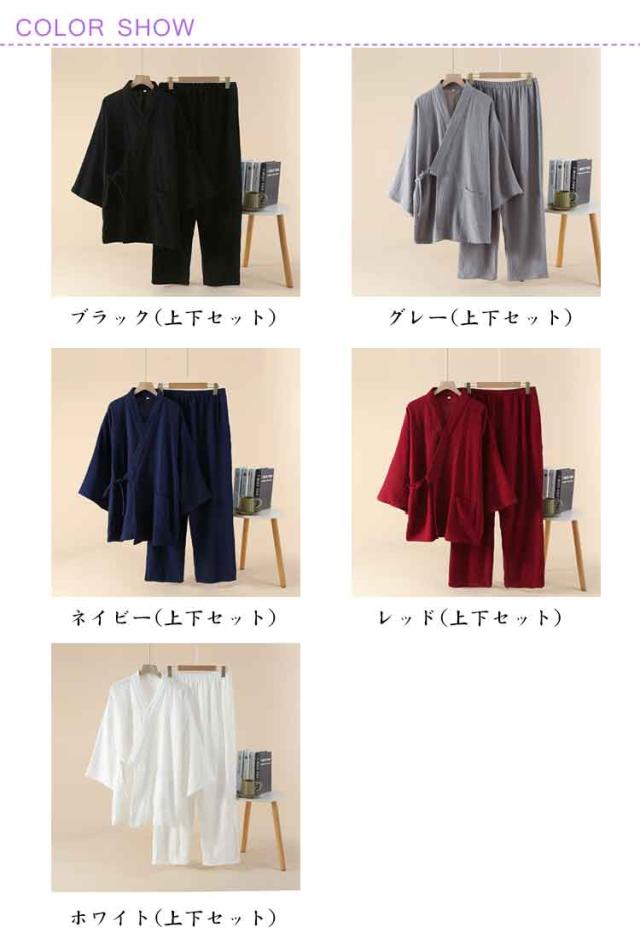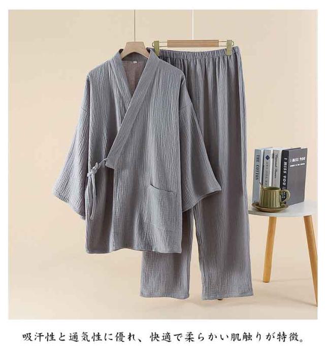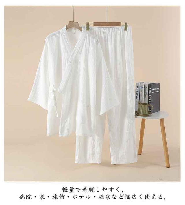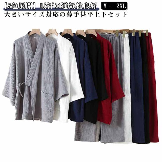 | 【5色展開】吸汗×通気性良好 大きいサイズ対応の薄手甚平上下セット ダブルガーゼ素材で作られた、春夏秋向けの薄手和服風上下セット。 吸汗性と通気性に優れ、快適で柔らかい肌触りが特徴。 Vネックの長袖トップスと長ズボン、実用的なポケット付きで便利。 軽量で着脱しやすく、病院・家・旅館・ホテル・温泉など幅広く使える。 | |