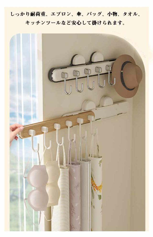 | デットスペースに隠して収納!見せたくない小物もスッキリ収納 吸盤で簡単に取り付けられるスライド式フック。 伸縮・スライド機能付きで使わない時は隠せるから、生活感を減らしてスッキリした空間に。 吸盤式で工具不要賃貸でもOK!壁やタイルにしっかり吸着して傷をつけません。 使うときだけフックを引き出し、不要時は隠せる省スペース設計。デッドスペースに掃除用品やキッチン小物などを隠して収納できます。必要な時だけ引き出せるので、邪魔になることもありません。 冷蔵庫の横、洗濯機の横、キッチン、浴室、洗面所、玄関、クロゼット、押入れなど、掛けたい場所に自由設置。 しっかり耐荷重、エプロン、傘、バッグ、小物、タオル、キッチンツールなど安心して掛けられます。 押入れやクロゼットのサイドに設置して、ブラジャー、ネクタイ、スカーフ、下着など散らかせがちな小物をスッキリ収納!ドアを閉めるとスッキリした空間に。 | |