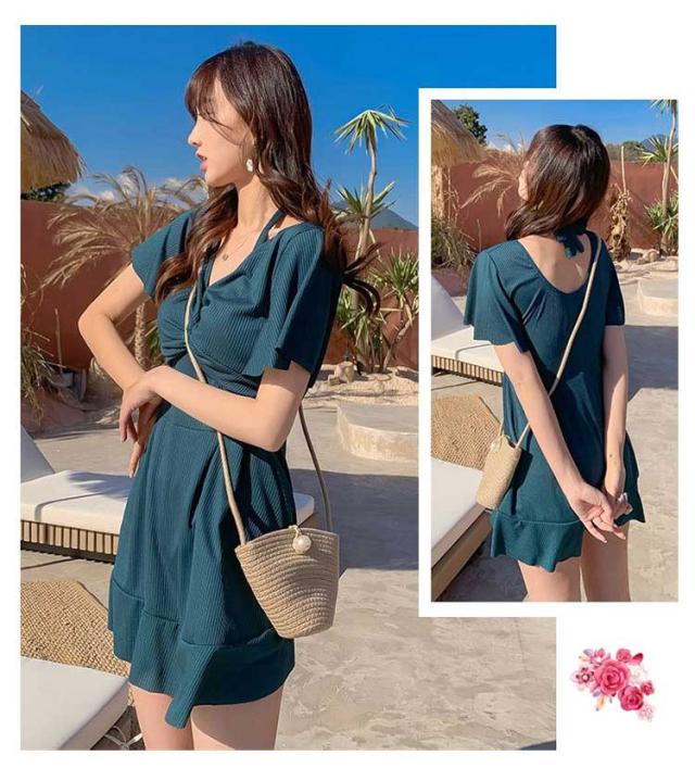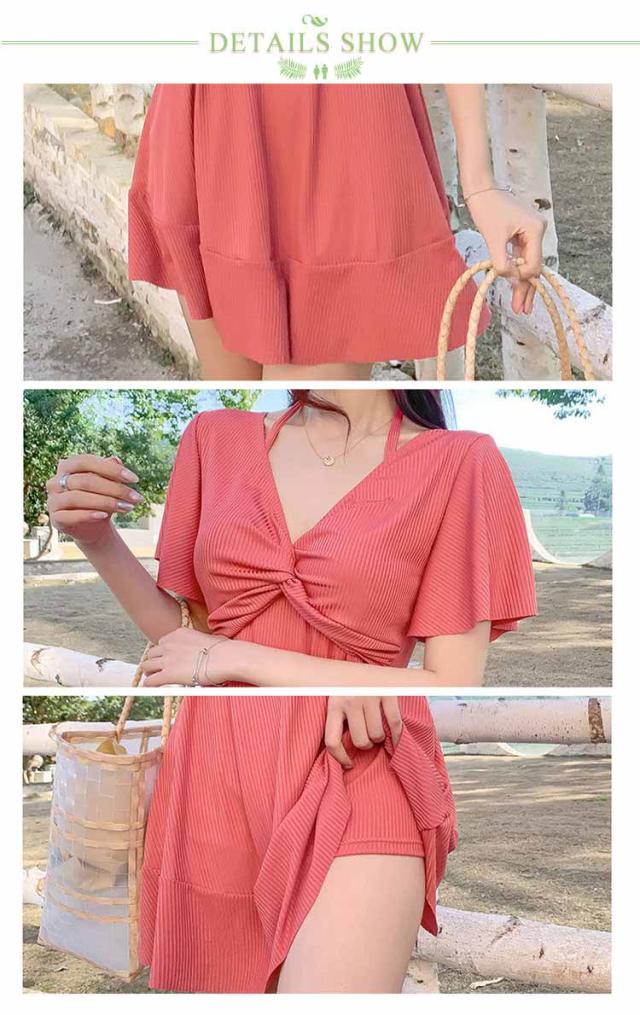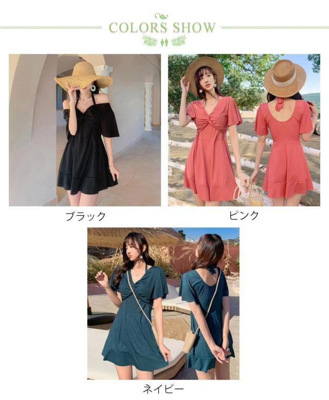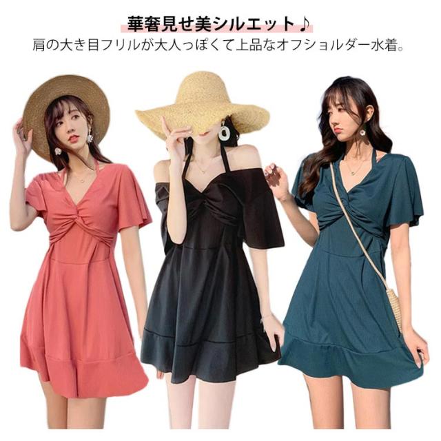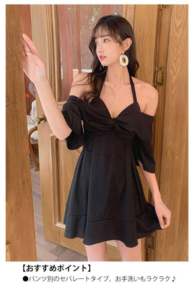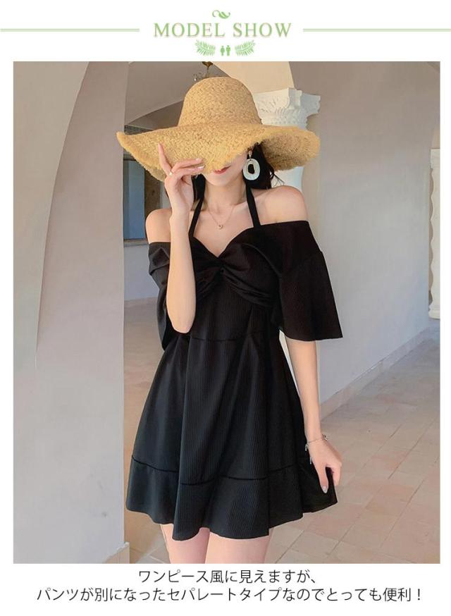 水着 体型カバー ワンピースに見えるセパレート セパレート 海 レディース 水着 オフショルダー セット ショートパンツ ディアコロン 可愛い おしゃれ セクシー パンツ別 プール 水着 リゾート 無地 ブラ ショーツ