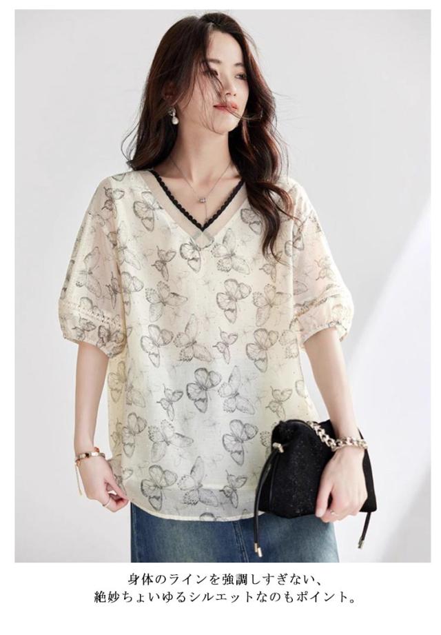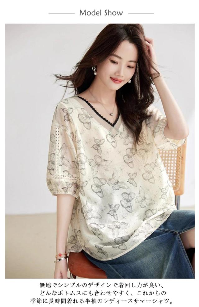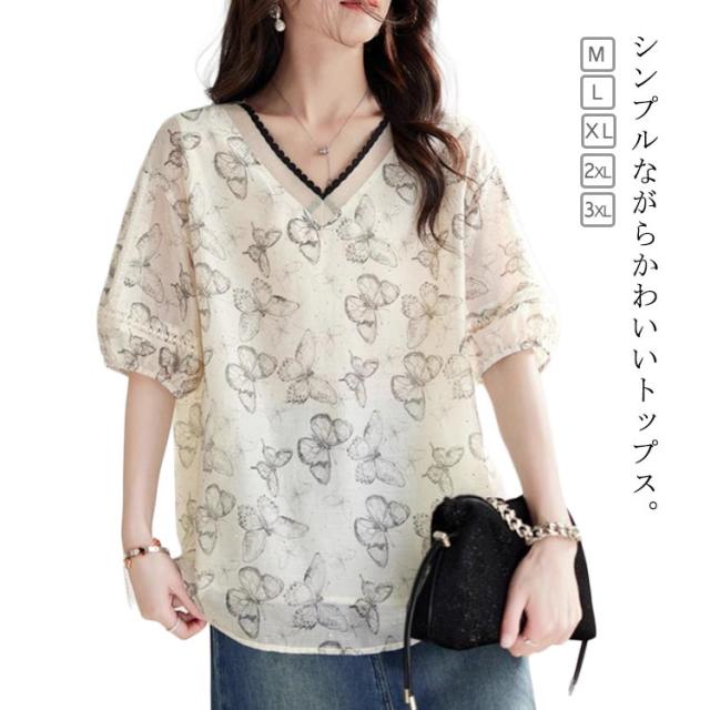 ブラウス トップス シャツ レディース フォーマル 夏 ゆったり シャツ 蝶 おしゃれ プルオーバー 夏コーデ 半袖 無地 シンプル 40代 きれいめ 夏用 薄手 オフィス カジュアル 20代 30代 かわいい 部屋着 普段着 仕事 通勤 OL 結婚式 パーティー 二次会