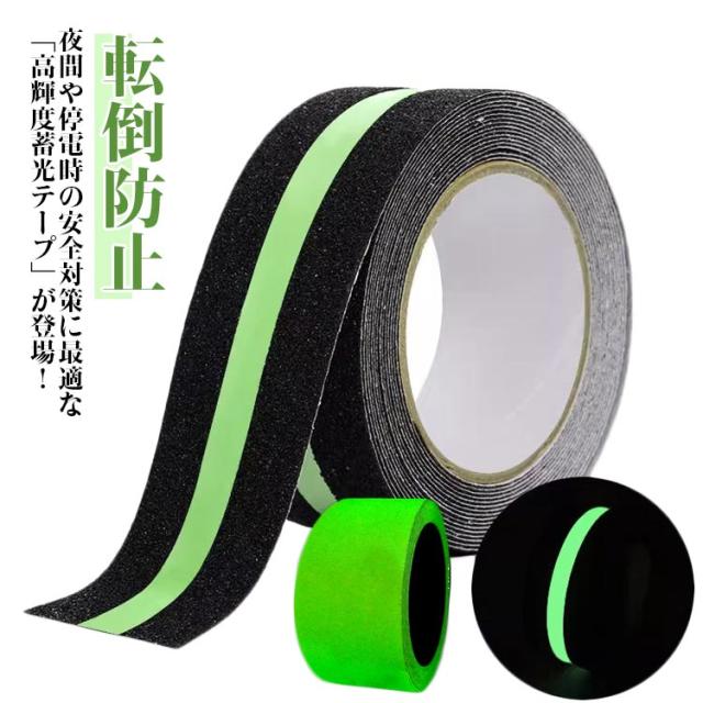 蓄光 事故防止 滑り止めテープ 蓄光テープ 非常時 蛍光テープ 転倒防止 安全対策 高輝度 ノンスリップテープ 屋外 屋内 階段 暗所駐車場 浴室 強力粘着 地震 防災対策 耐水 貼るだけ カットOK 家庭用 廊下