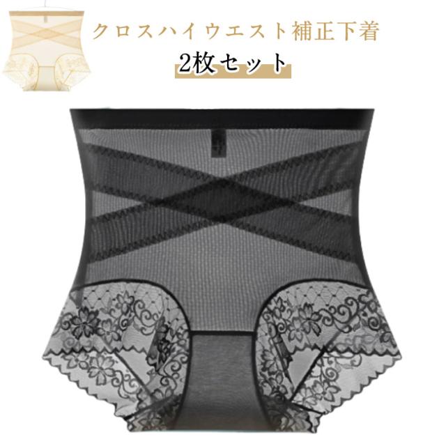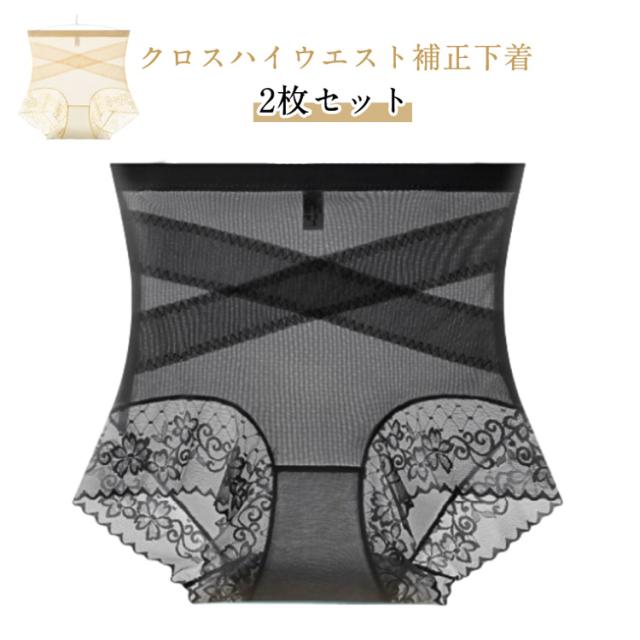 メッシュ ヒップアップ クロス加圧ハイウエスト補正下着 補正下着 2枚セット ハイウエストショーツ ガードル 下着 インナー レディース 薄手 美尻 お腹引き締め 補正下着 インナー ガードルショーツ クロス加圧ハイウエスト補正下着 通気