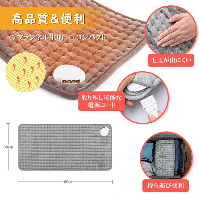ホットマット 電気マット ホットカーペット 60×30cm 温度 切替 調節 自動 タイマー 手洗いOK オフィス 洗える 足元用 在宅勤務 冬家電 防寒 アウトドア