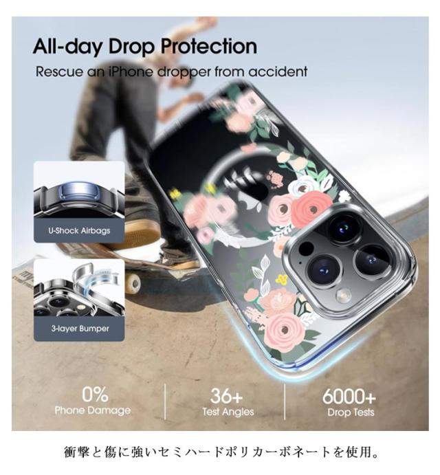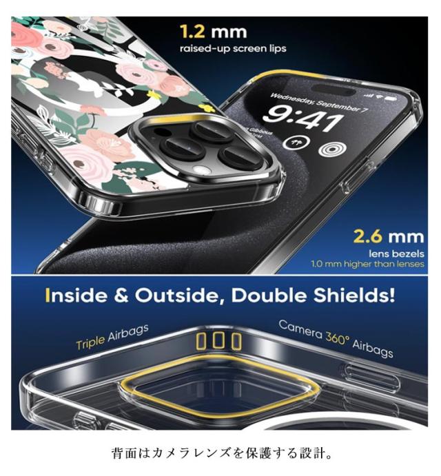| 半透明でマットな背面クリアケース 衝撃と傷に強いセミハードポリカーボネートを使用。 サイドは優しい手触りで着脱しやすいソフトTPU素材を採用。 背面はカメラレンズを保護する設計。 ワイヤレス充電に対応。 | |