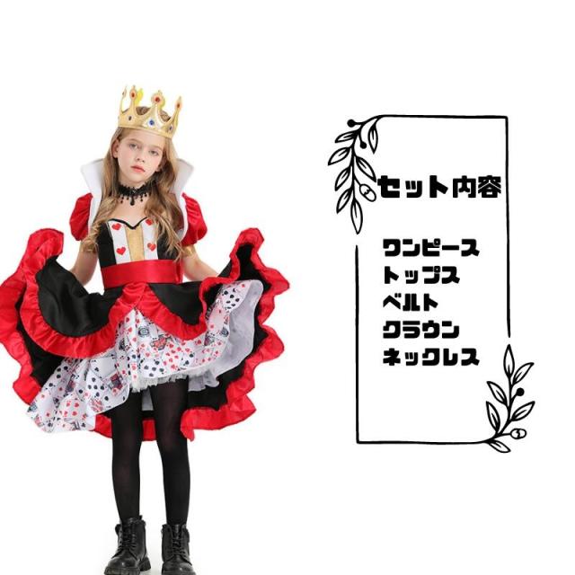 ハロウィン コスプレ 不思議の国のアリス 赤の女王 アリス ハートの女王 2点セット 子供用 舞台 キッズドレス風 コスプレ衣装 プリンセス キッズ かわいい 衣裳 こども仮装 ドレス ハロウィーン