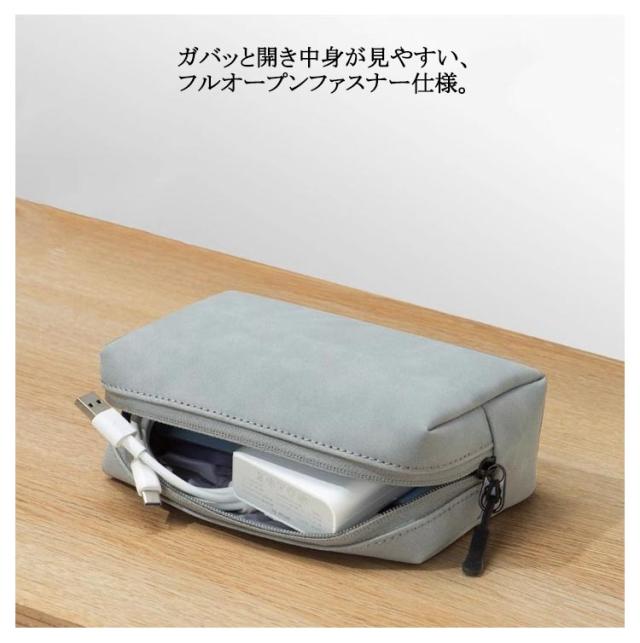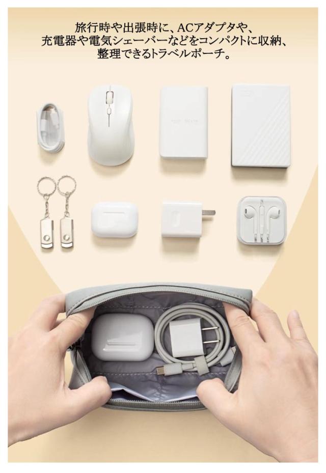 | 充電ケーブルやアダプタなどをコンパクトに収納できひと纏めにできるガジェットポーチ。【5個ポケット】 ガバッと開き中身が見やすい、フルオープンファスナー仕様。 5個ポケット付きで収納しやすい。 旅行時や出張時に、ACアダプタや、充電器や電気シェーバーなどをコンパクトに収納、整理できるトラベルポーチ。 バッテリーやSDカードなどのカメラ周辺機器収納キャリングケースとしても使用できる収納ケースです。 | |