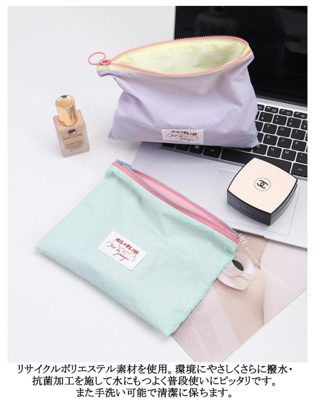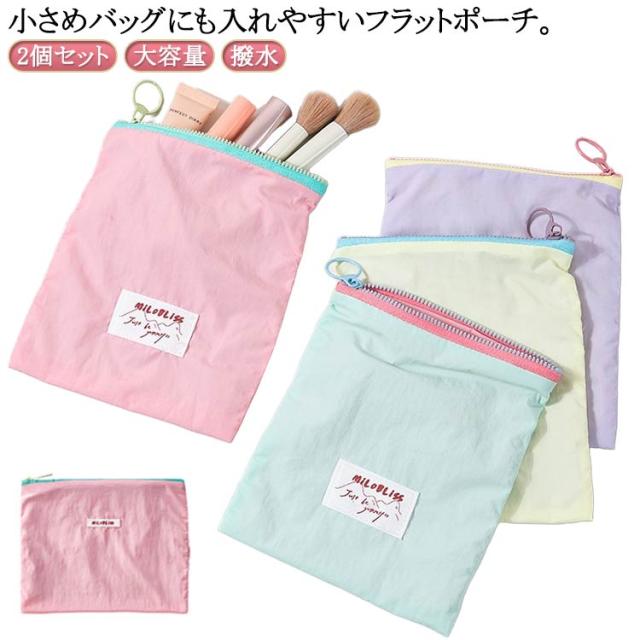 | 小さめバッグにも入れやすいフラットポーチ。【2個セット】 薬やコスメなどの小物をコンパクトに持ち運びできます◎ コンパクトな見た目でも収納力は十分あります。 日常使いはもちろん、旅行にも活躍すること間違いなし! リサイクルポリエステル素材を使用。環境にやさしくさらに撥水・抗菌加工を施して水にもつよく普段使いにピッタリです。また手洗い可能で清潔に保ちます。 | |