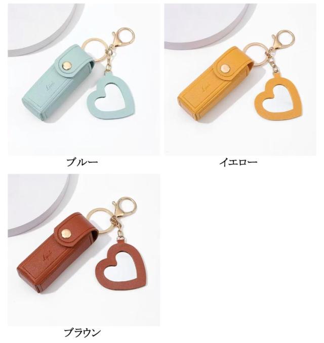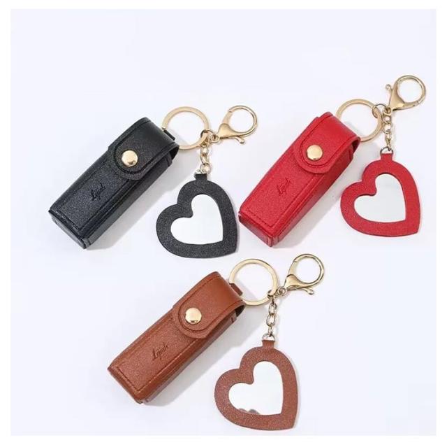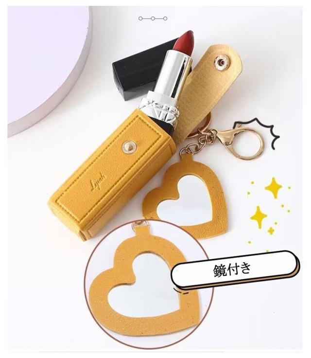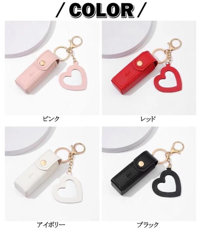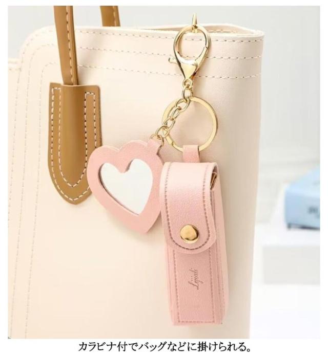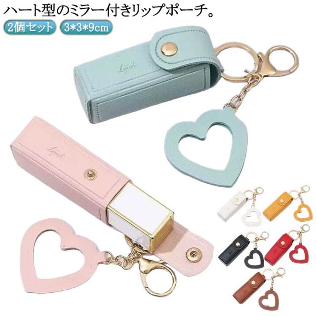 リップケース 2本 キーホルダー 口紅入れ ミニ ハート ミラー付き 口紅ケース ポーチ 2個セット 小さめ 1本 リップポーチ コスメポーチ カラビナ付 ケース 鏡付き 化粧ポーチ PU革 大人 かわいい おしゃれ 小物収納ケース 韓国 女性 誕生日 プレゼント