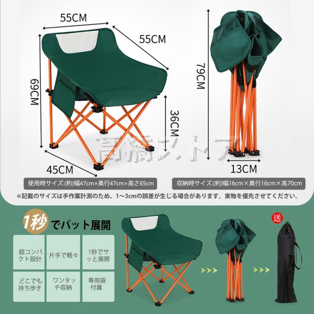折りたたみ椅子 アウトドアチェア 携帯椅子 グランドチェア 超軽量 持ち運び 便利 どこでも座れる キャンプチェア 携帯チェア アルミ合金 キャンプ 椅子 旅行 ハイキング キャンプ お釣り 収納袋付き ブラック
