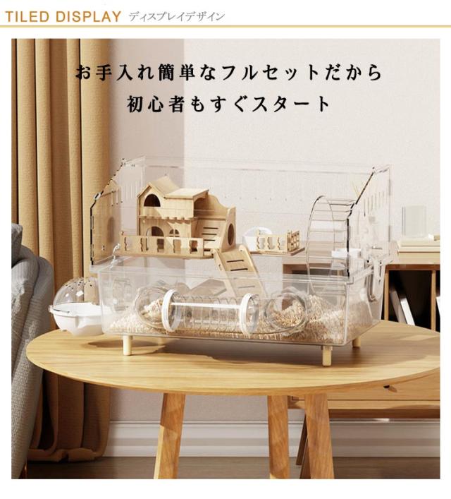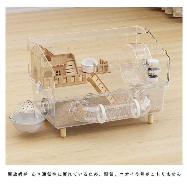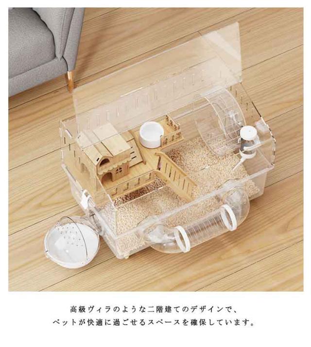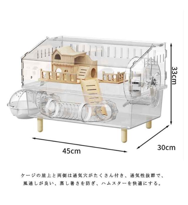 ゴールデンハムスター ハムスターケージ アクリル製 大型 透明ケージ 45×30×33cm 多頭飼い対応 脱走防止 広々スペース お手入れ簡単小動物 広い空間 大きい 静音設計 通気性良好 組み立て簡単 観察しやすい 給水ボトル 回し車 お風呂