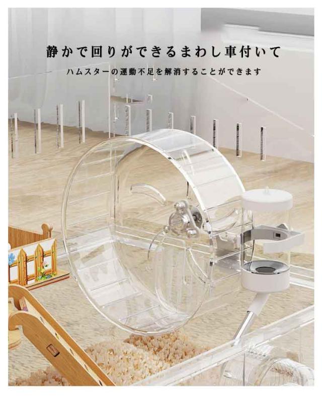 | 広々アクリルケージでハムスターの楽園を!脱走防止&静音設計で多頭飼いも安心。 お手入れ簡単なフルセットだから、初心者もすぐスタート。 ケージ本体、給水ボトル、餌入れ、ハウス、お風呂などで構成されています。 高級ヴィラのような二階建てのデザインで、ペットが快適に過ごせるスペースを確保しています。 静かで回りができるまわし車付いて、ハムスターの運動不足を解消することができます。 どの角度からでもペットの動きが見え、楽しい観察時間を提供します。 ペットの遊びや休息を見守ることができます。丸まって眠っているハムちゃんがうっすら見えて、とてもかわいいです。 ケージの屋上と両側は通気穴がたくさん付き、通気性抜群で、風通しが良い、蒸し暑さを防ぎ、ハムスターを快適にする。 開放感が あり通気性に優れているため、湿気、ニオイや熱がこもりません。 ケージはバックルで固定され、簡単分離ができます。 引っ越しや収納・運送にも便利です。一回で木屑やゴミを出すことできます。衛生的な住まいを提供し、ペットの健康をサポートします。 | |