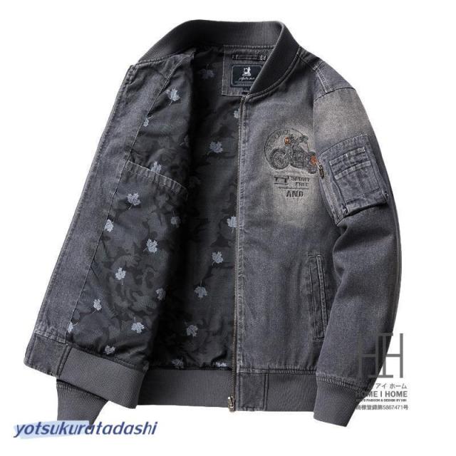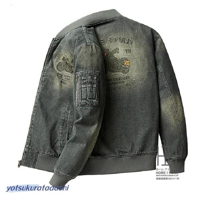 デニムジャケット メンズ カバーオール ユーズド加工 豪華刺繍入り おしゃれ スタイリッシュ Gジャン ストリート ワークジャケット カジュアル アウター