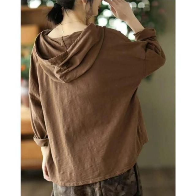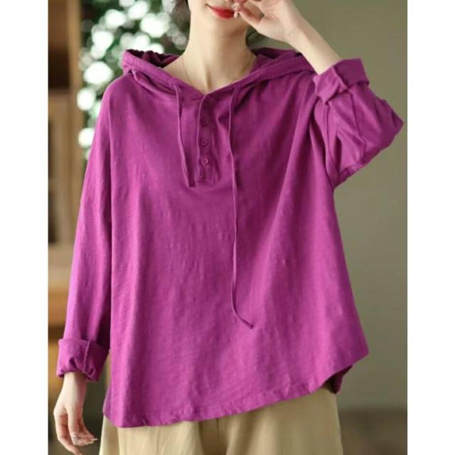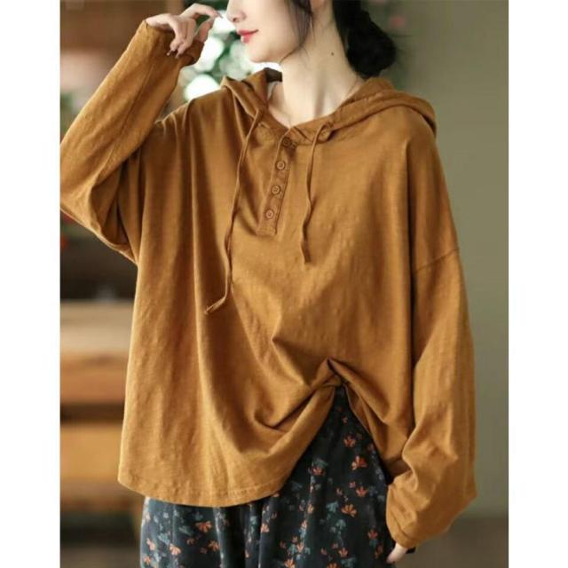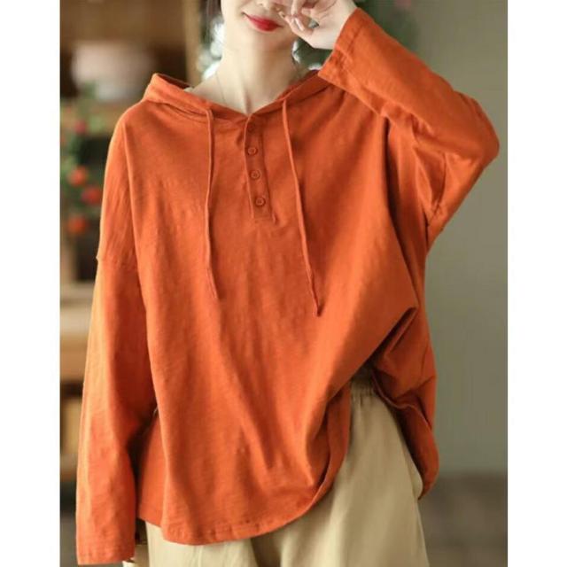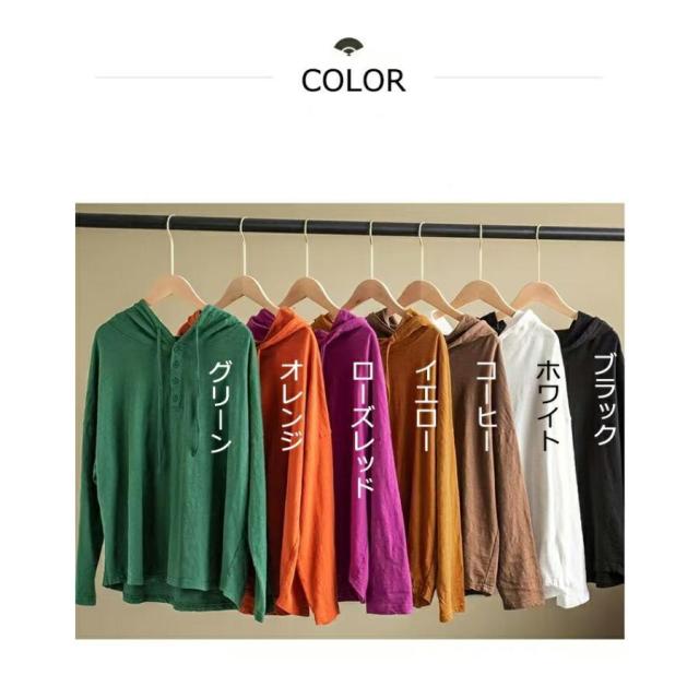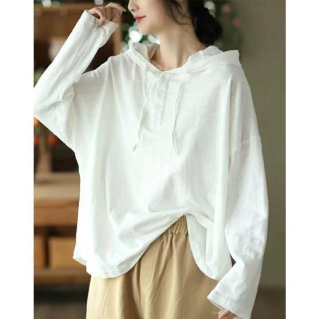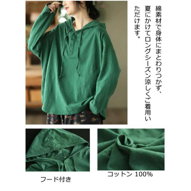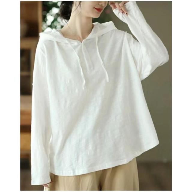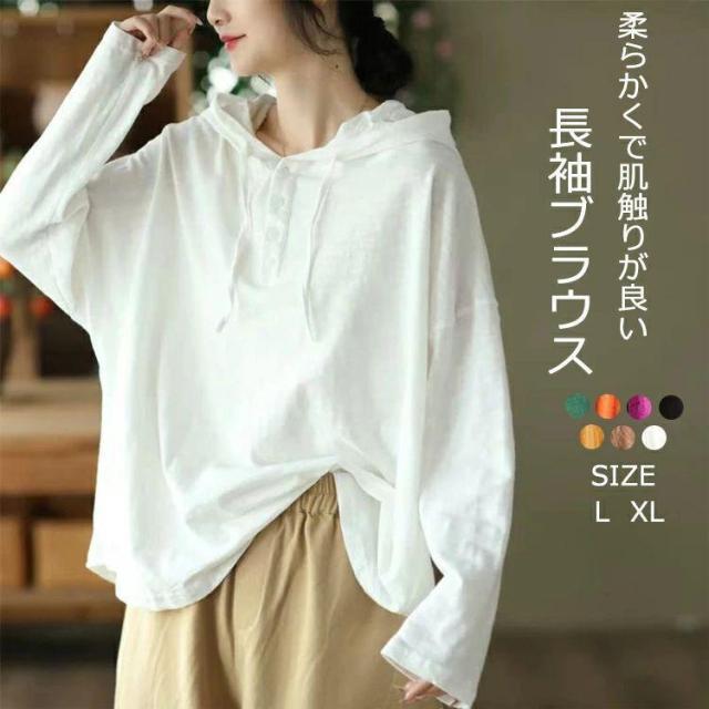 夏新作長袖 tシャツ レディース パーカー tシャツ インナー トップス ブラウス ラウンドネック コットン 長袖tシャツ ロングtシャツ 綿 フード付き 白tシャツ 大